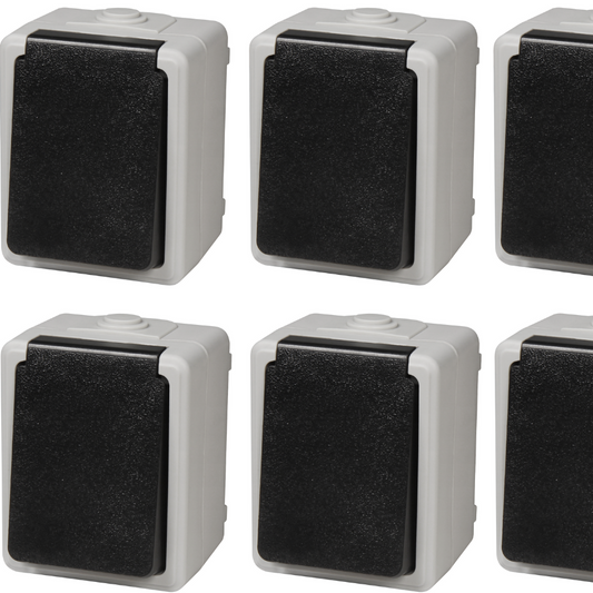 Inverseur en saillie résistant aux éclaboussures Classe de protection IP44 250V~/10A cadre gris interrupteur noir...