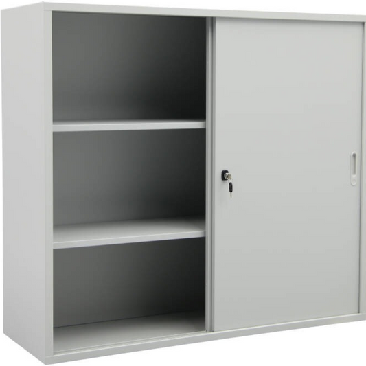 Cette armoire à portes coulissantes est fabriquée en tôle d'acier solide avec un revêtement en...