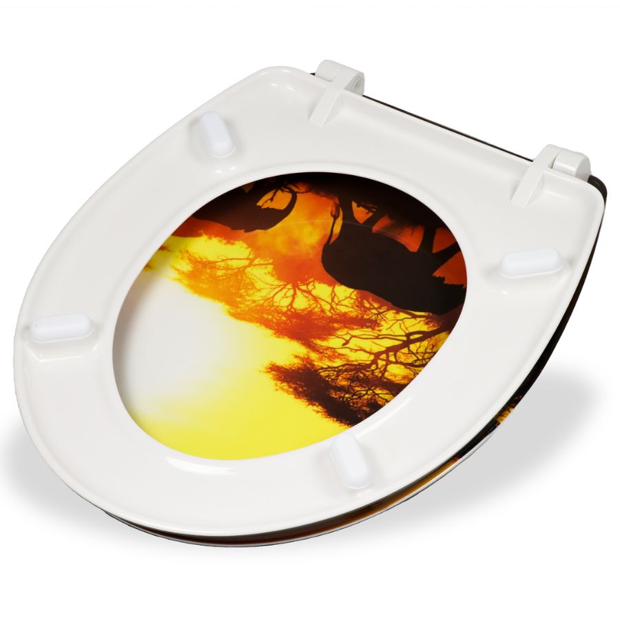 Apporte une touche de vacances à votre salle de bain et à vos toilettes invités. Facile d'entretien et adapté à toutes les toilettes standards. Disponible en différents motifs.