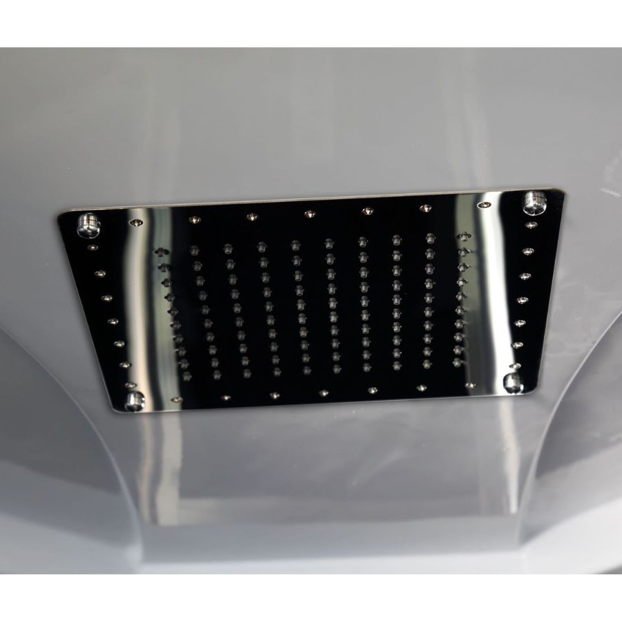 Une douche en acier inoxydable avec éclairage LED souligne l'aspect général chic de la cabine de douche. La détente du corps et de l'esprit est offerte grâce au jet massant des glandes. Les douches de massage réglables en 3 directions peuvent être réglées individuellement pour l'utilisateur. Une étagère en verre a également été fournie. La particularité du verre de sécurité ESG : en cas de dommage, le verre se brise en petits fragments partiellement imbriqués et présente donc un faible risque de blessure.