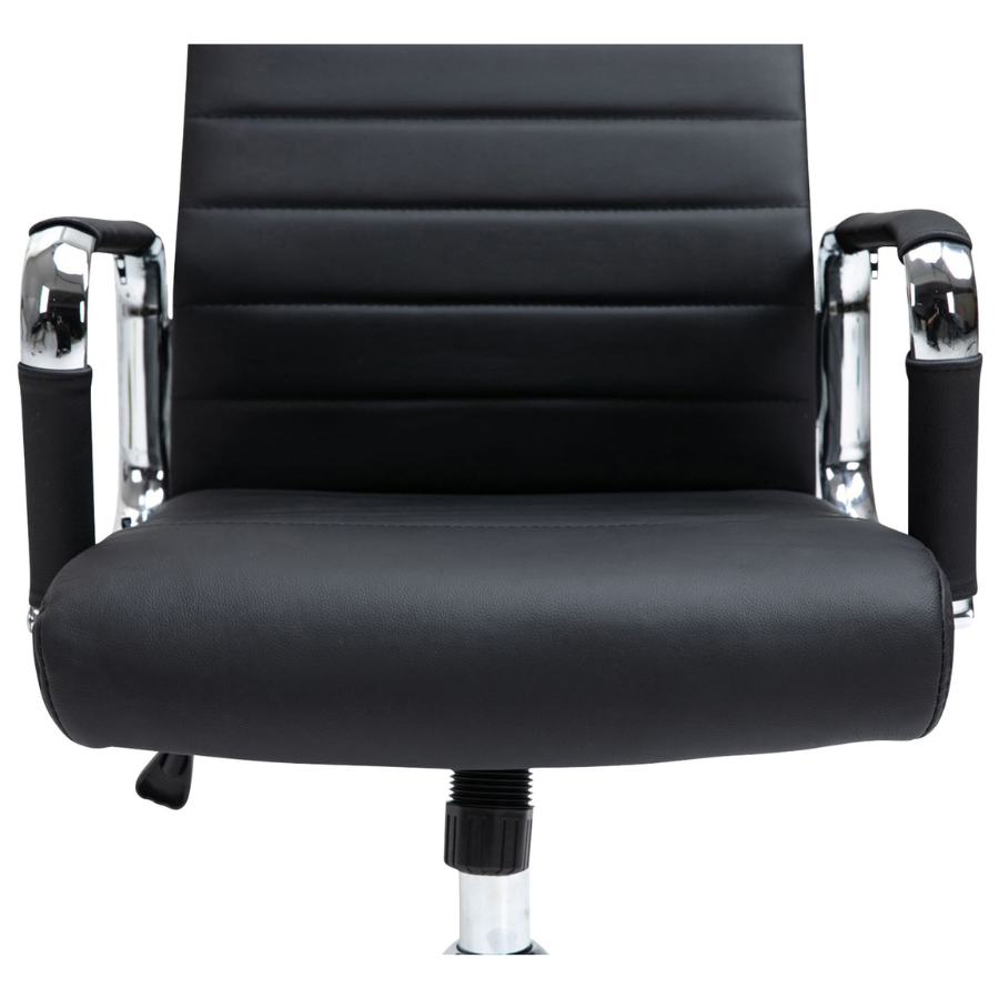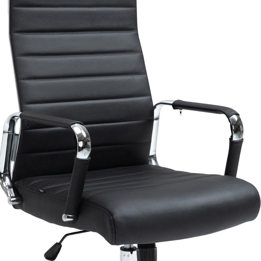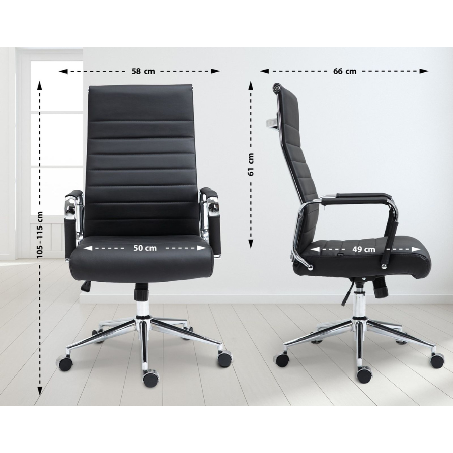 Cette chaise de bureau exclusive Columbus impressionne non seulement par son look moderne, mais personne ne peut la battre en matière de confort. Son rembourrage de haute qualité garantit une assise confortable pendant plusieurs heures. Du cuir de vachette de haute qualité a été utilisé pour recouvrir l'assise et le dossier. La hauteur du siège est réglable en continu et garantit une assise ergonomique. De plus, la chaise de bureau est équipée d'un mécanisme à bascule qui assure une plus grande liberté de mouvement. La stabilité est assurée par le cadre en métal d'aspect chromé, également disponible en noir avec le cache noir. Les cinq roulettes silencieuses vous permettent de rouler facilement et sans effort sur le sol, que ce soit sur des sols durs ou sur de la moquette.