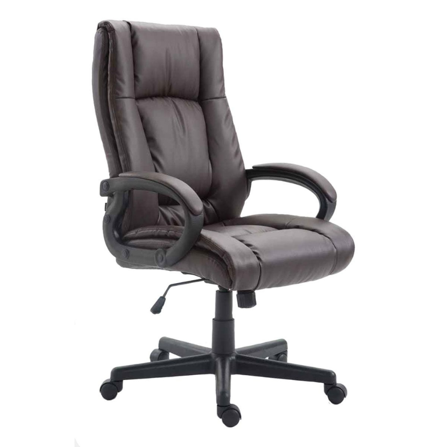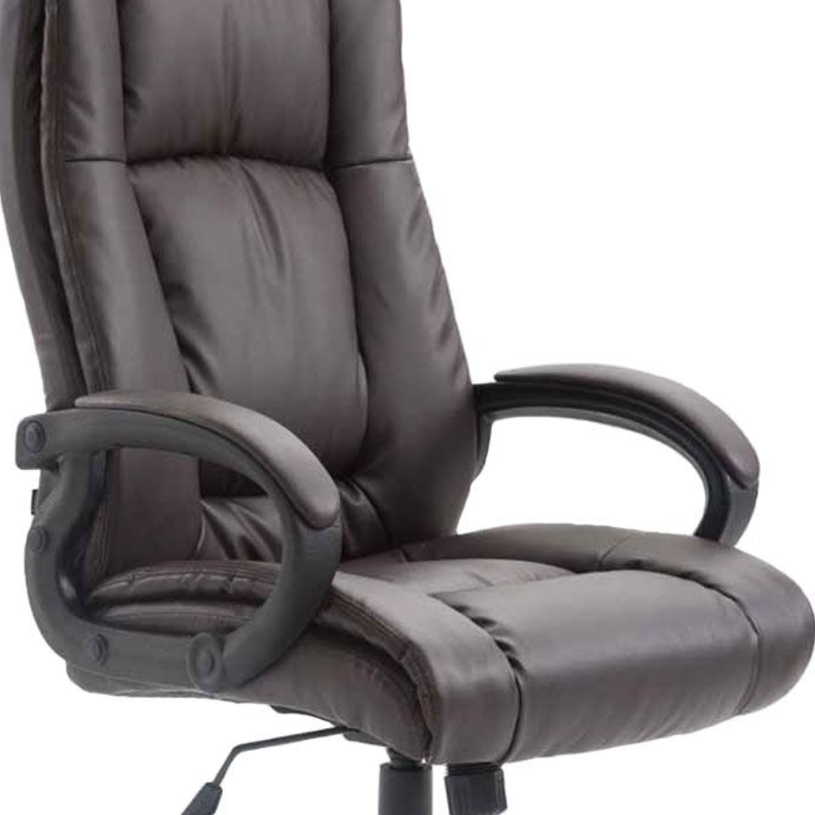 Le fauteuil de direction XL Sparta impressionne par un rembourrage de très haute qualité et un revêtement en cuir synthétique au niveau de l'assise et du dossier, ainsi que sur les accoudoirs. Les housses en cuir synthétique ont l'avantage d'être élastiques et de s'étirer facilement lorsque la charge est soulagée. Non seulement cela est plus joli, mais cela augmente également la durée de vie de la housse de siège. La chaise de bureau ne laisse également rien à désirer en matière de confort, car une position assise confortable est garantie grâce au dossier de forme ergonomique et à la hauteur d'assise réglable en continu, actionnée par le levier situé sous l'assise. La liberté de mouvement est permise par le mécanisme à bascule intégré. Le cadre est en plastique et repose en toute sécurité sur cinq roulettes à roulement souple, ce qui signifie que vous pouvez toujours rouler facilement et sans serrer sur le sol, qu'il soit dur ou recouvert de moquette.