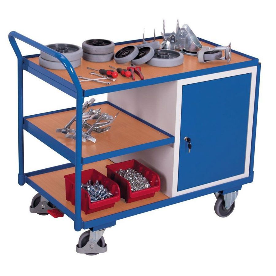 Chariot d'atelier - 250 kg - surface de chargement 590 x 985 mm (LxP) - armoire à portes battantes
