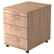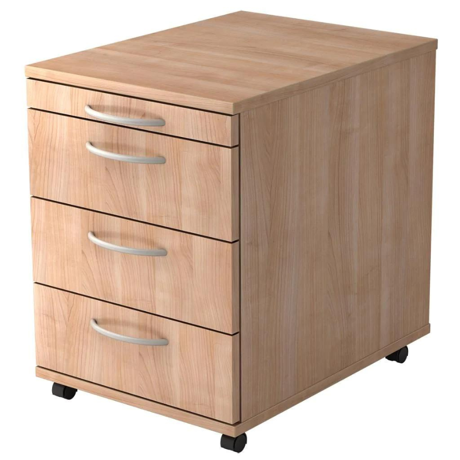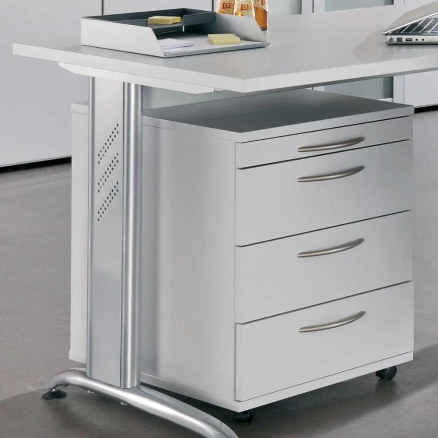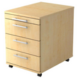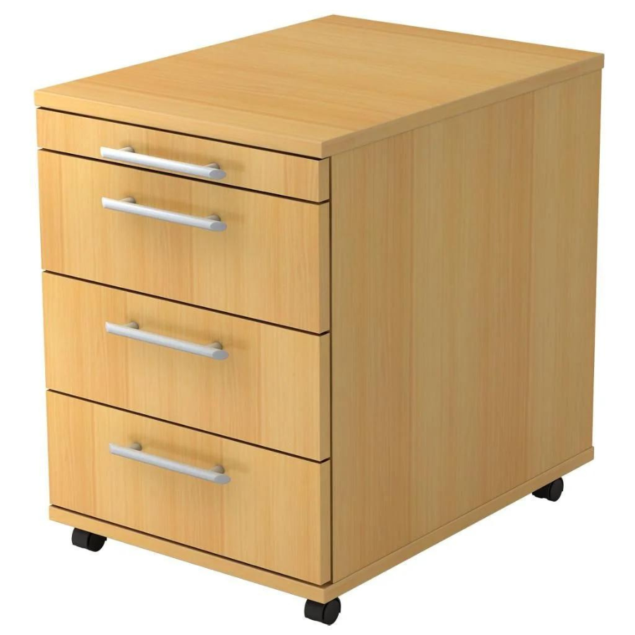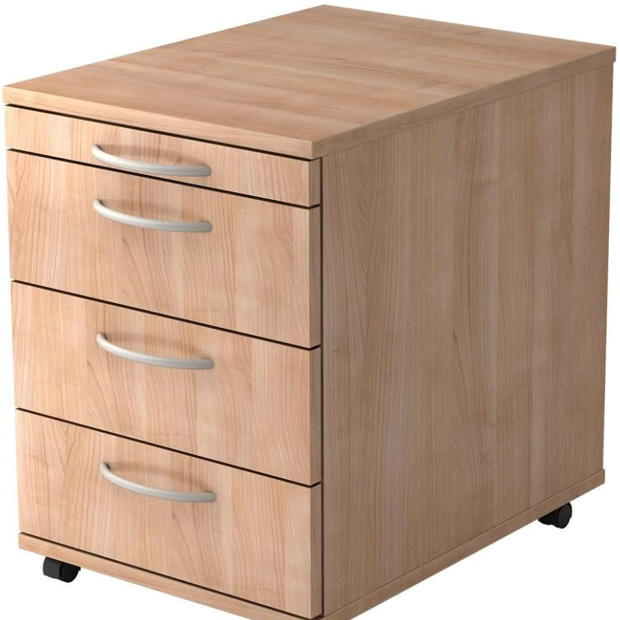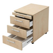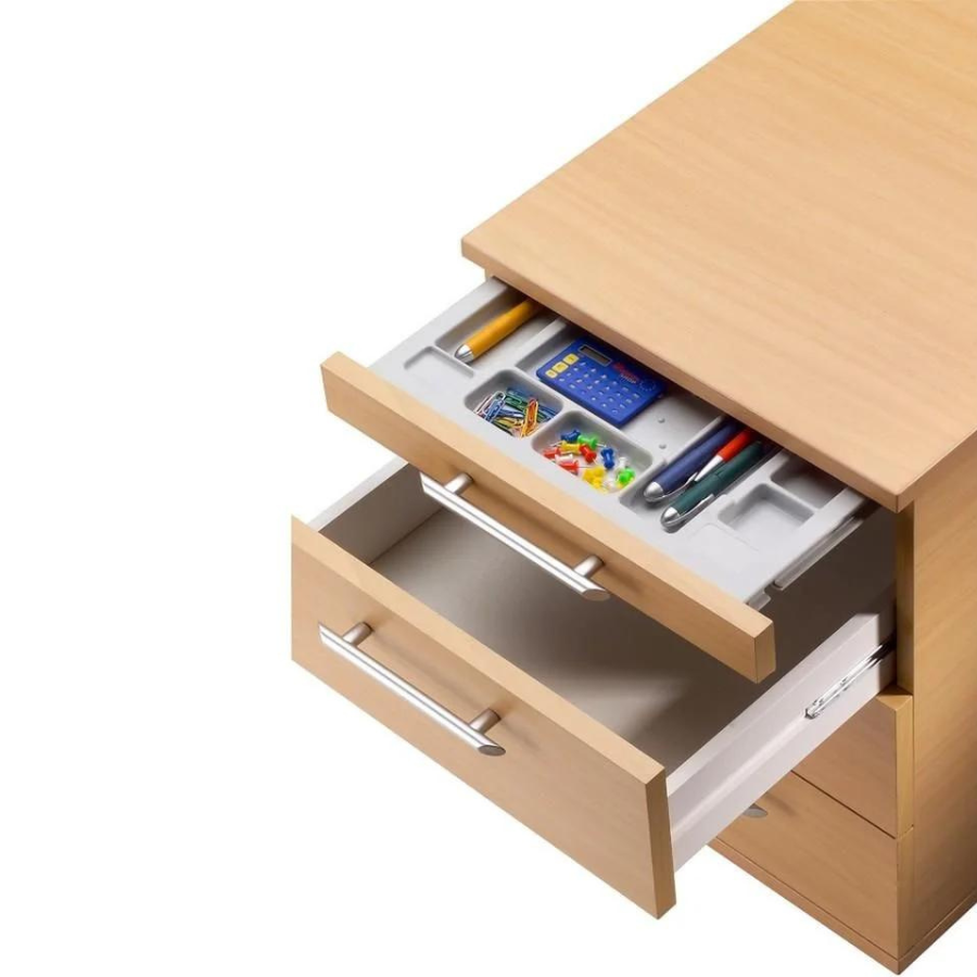 Le conteneur roulant 4S Basic dispose d'un tiroir à ustensiles pour les petits objets tels que stylos, trombones, post-it, etc. Il propose également trois tiroirs avec cadres en bois sur guides à billes métalliques d'une capacité de charge de 8 kilogrammes chacun et 75% extension.
