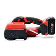 L'appareil est conçu pour des sangles en PET (polyéthylène) et PP (polypropylène) d'une largeur de 13 à 16 mm et d'une épaisseur de 0,5 à 1,2 mm. Par défaut, le dispositif de tension est réglé pour les feuillards PET, mais il est possible de passer aux feuillards PP à l'aide du matériel de montage fourni. Le processus de soudage ne nécessite qu'une température de 15 à 40 °C, ce qui élimine tout risque de brûlure.