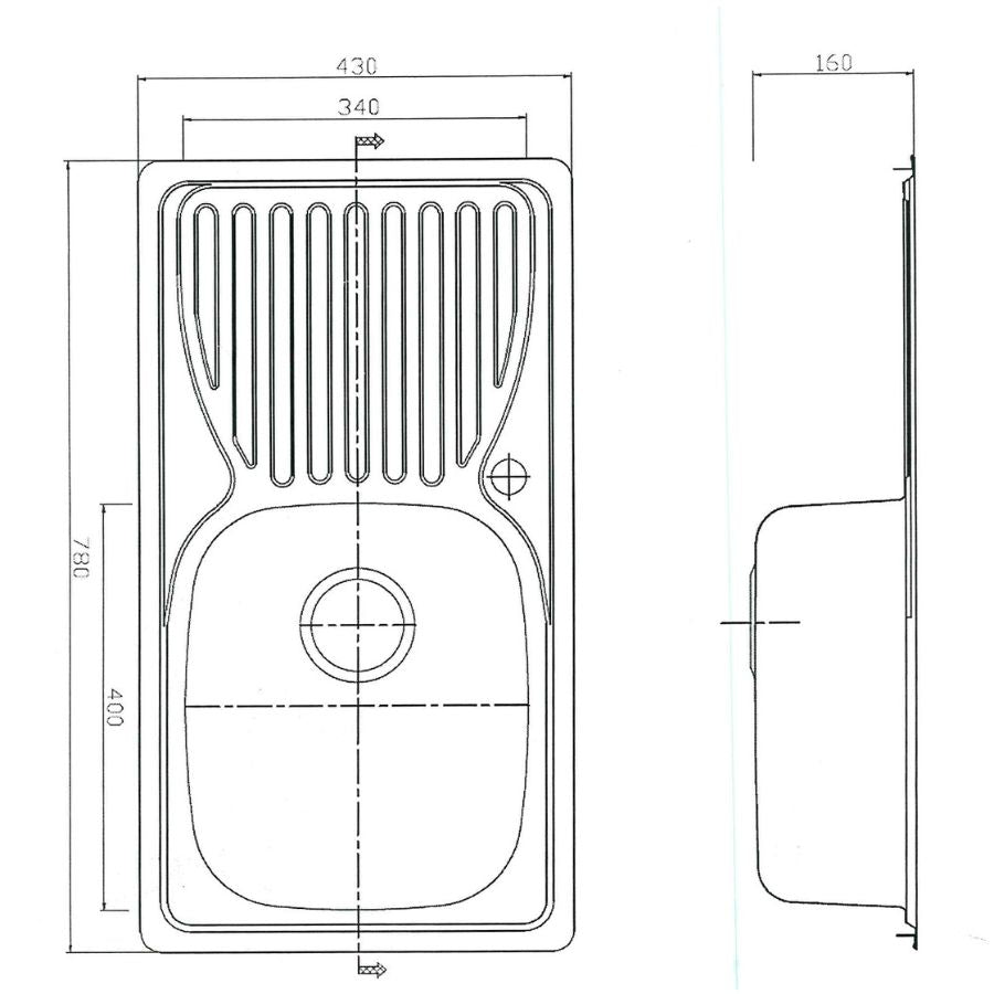 Évier inox "Hemera L" évier rectangulaire à encastrer avec égouttoir à droite