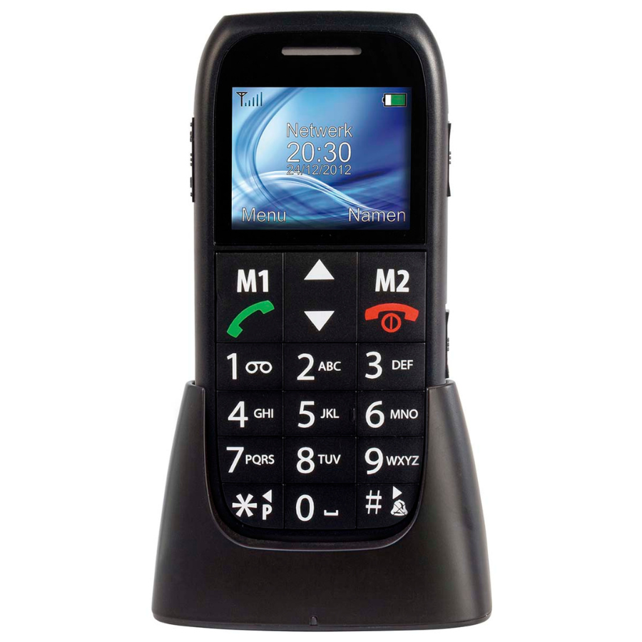 Téléphone portable simple FM-7500 pour personnes âgées avec bouton panique SOS noir