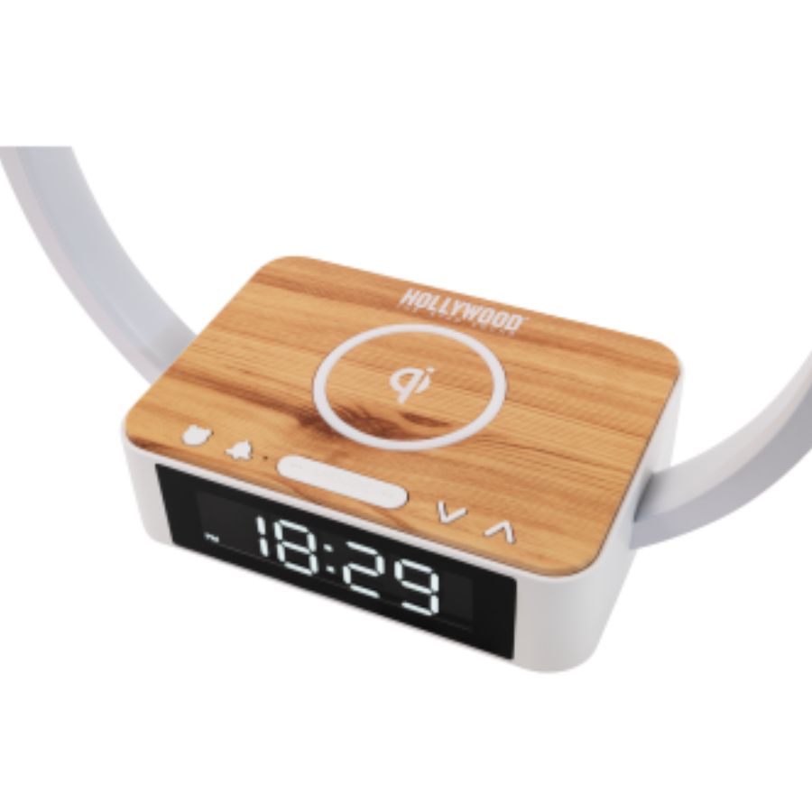 LAMPE DE CHEVET LED HOLLYWOOD, CHARGEUR SANS FIL ET FONCTION RÉVEIL