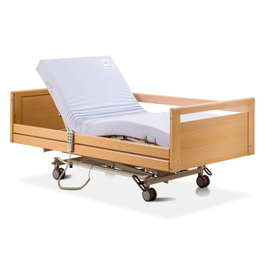 Avec une capacité de charge maximale de 135 kg, le lit de soins Elisa offre une surface de couchage stable et sûre. Le plan de couchage en 4 parties peut être réglé individuellement à l'aide de l'interrupteur manuel inclus pour maximiser le confort du patient.