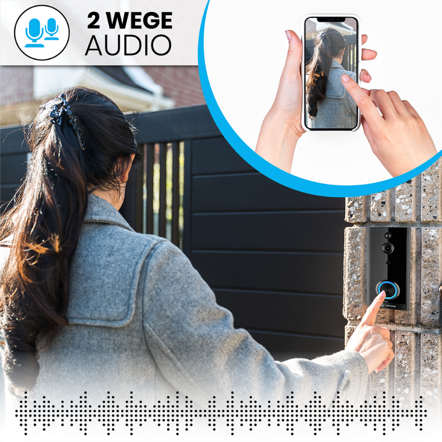Si vous êtes chez vous, vous pouvez voir qui sonne à la porte sur votre smartphone ou votre tablette depuis votre canapé. La sonnette WiFi offre également un haut niveau de protection contre les invités indésirables pour les enfants qui ne peuvent pas voir à travers la porte espion en raison de leur taille. S'il y a du mouvement devant votre porte d'entrée, vous pouvez vous faire envoyer un message push.