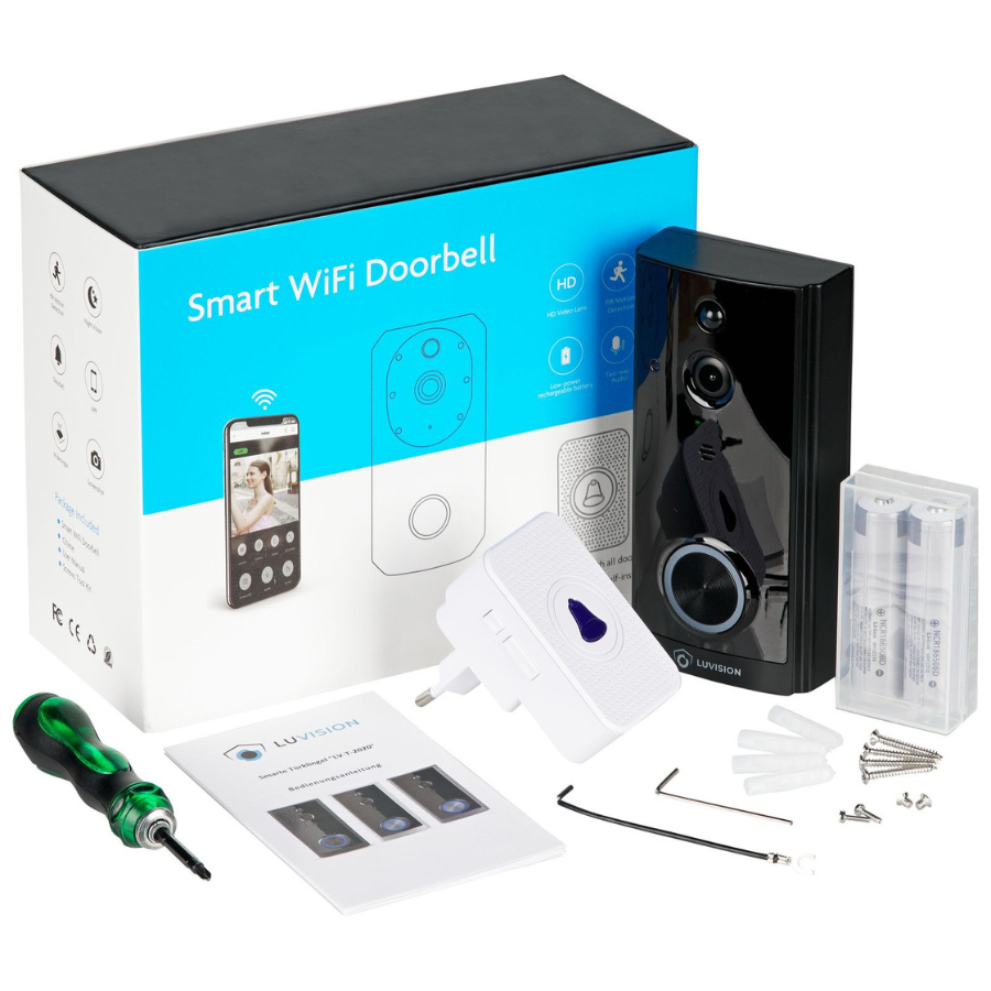 Le système de sonnette vidéo intelligente avec caméra LUVISION LV-T-2020B est une sonnette radio intelligente sans fil avec une caméra vidéo intégrée. Si un visiteur appuie sur le bouton de cloche, cela sera signalé sur votre smartphone ou votre tablette, où que vous soyez dans le monde. La livraison comprend une sonnette pour la prise intérieure