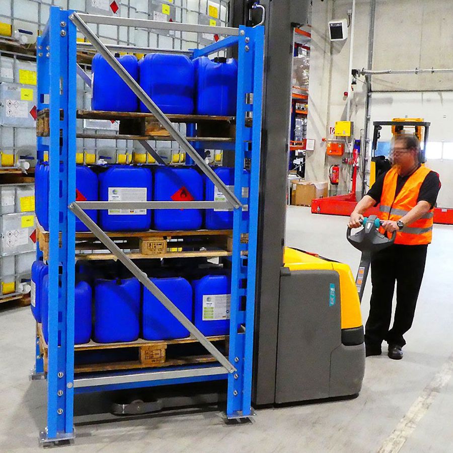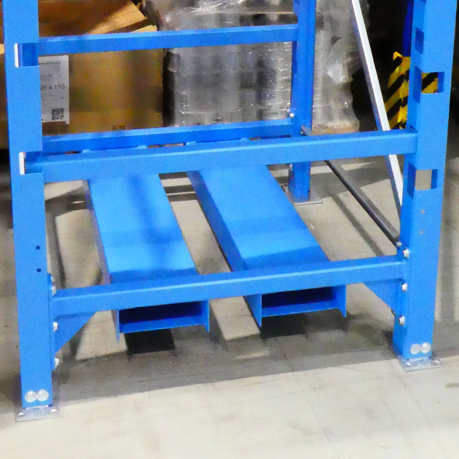 La version mobile est équipée de poches carrossables pour un transport en toute sécurité avec un chariot élévateur ou un gerbeur accompagnant. Nos rayonnages à palettes sont également disponibles dans d'autres couleurs RAL ou galvanisés à chaud moyennant un supplément.