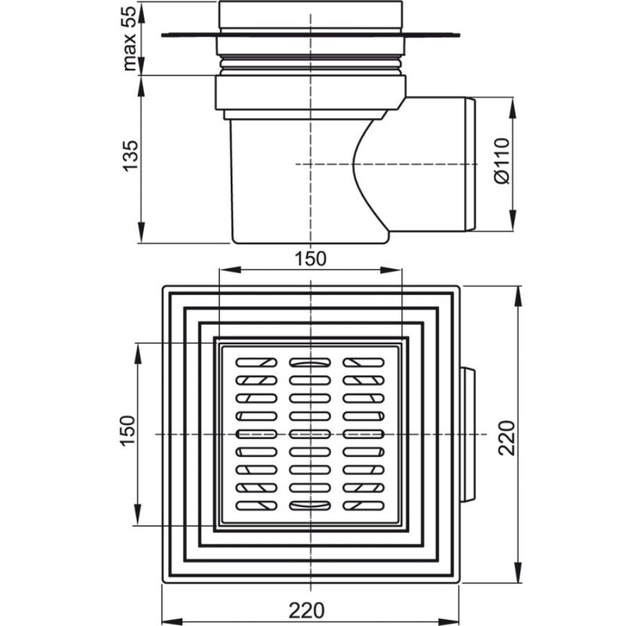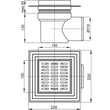 Siphon de sol Alcaplast APV12 en acier inoxydable 150x150 mm série APV1 horizontal
