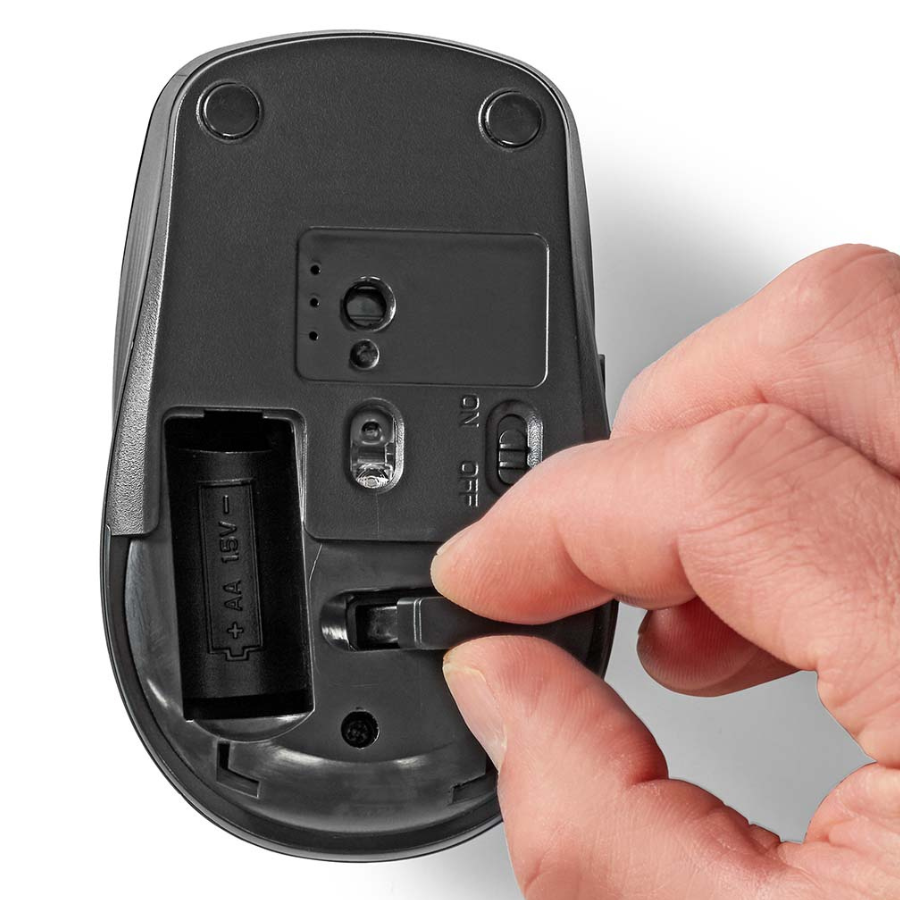 La souris optique ne nécessite qu'une pile AA pour fonctionner. Elle est dotée d'un interrupteur marche/arrêt qui permet de préserver la durée de vie de votre pile.